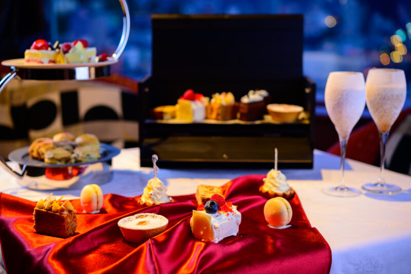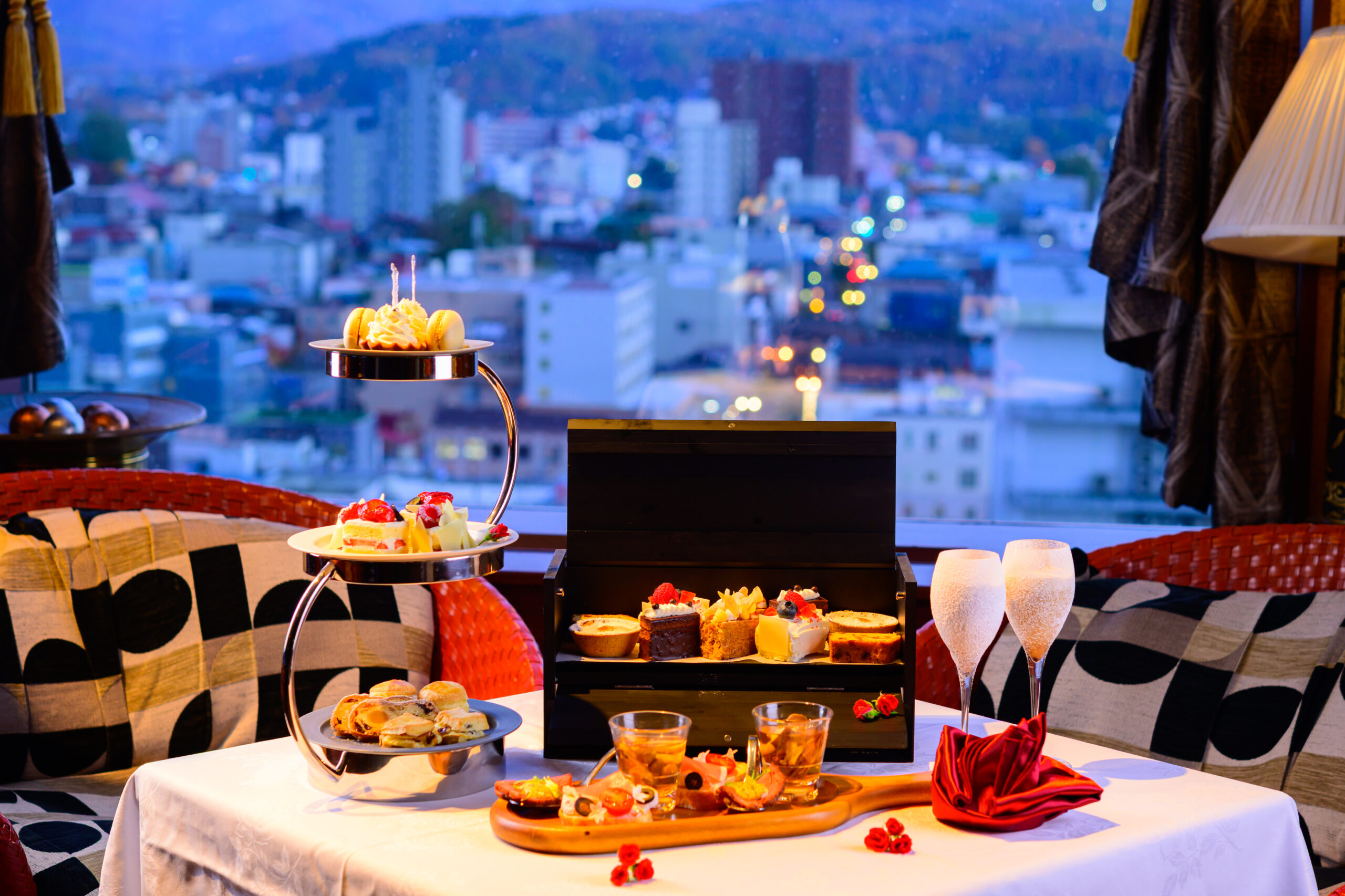 ホテル最上階トップラウンジ 「ポールスター」にて、北海道産食材を散りばめたセイボリーとスイーツが織りなす、上質なハイティーをお届け