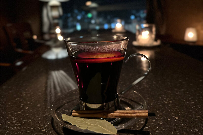 【おたる 雪あかりの路】の期間に合わせホテル最上階トップラウンジが幻想的な光に包まれます。ゆらめくキャンドルとともに、ホテルソムリエが雪あかりの路に合わせ仕立てた特製ホットワインをご用意。赤ワインの深みとスパイスの香りが冬の夜を優しく温めます。✨